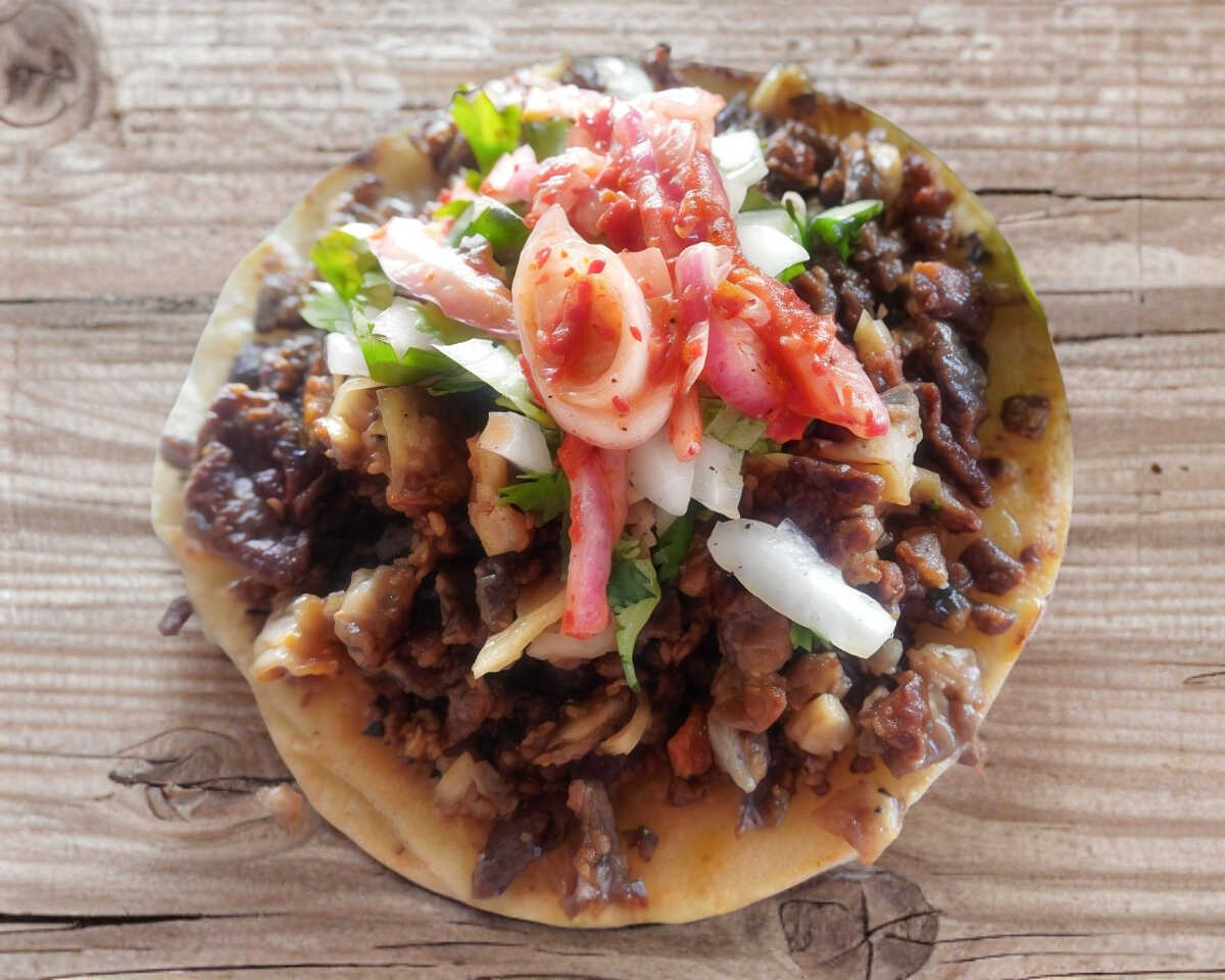 gordita con acientos, queso y la carne de tu elección.