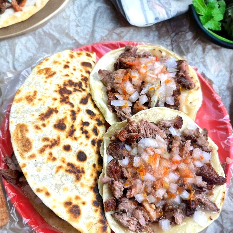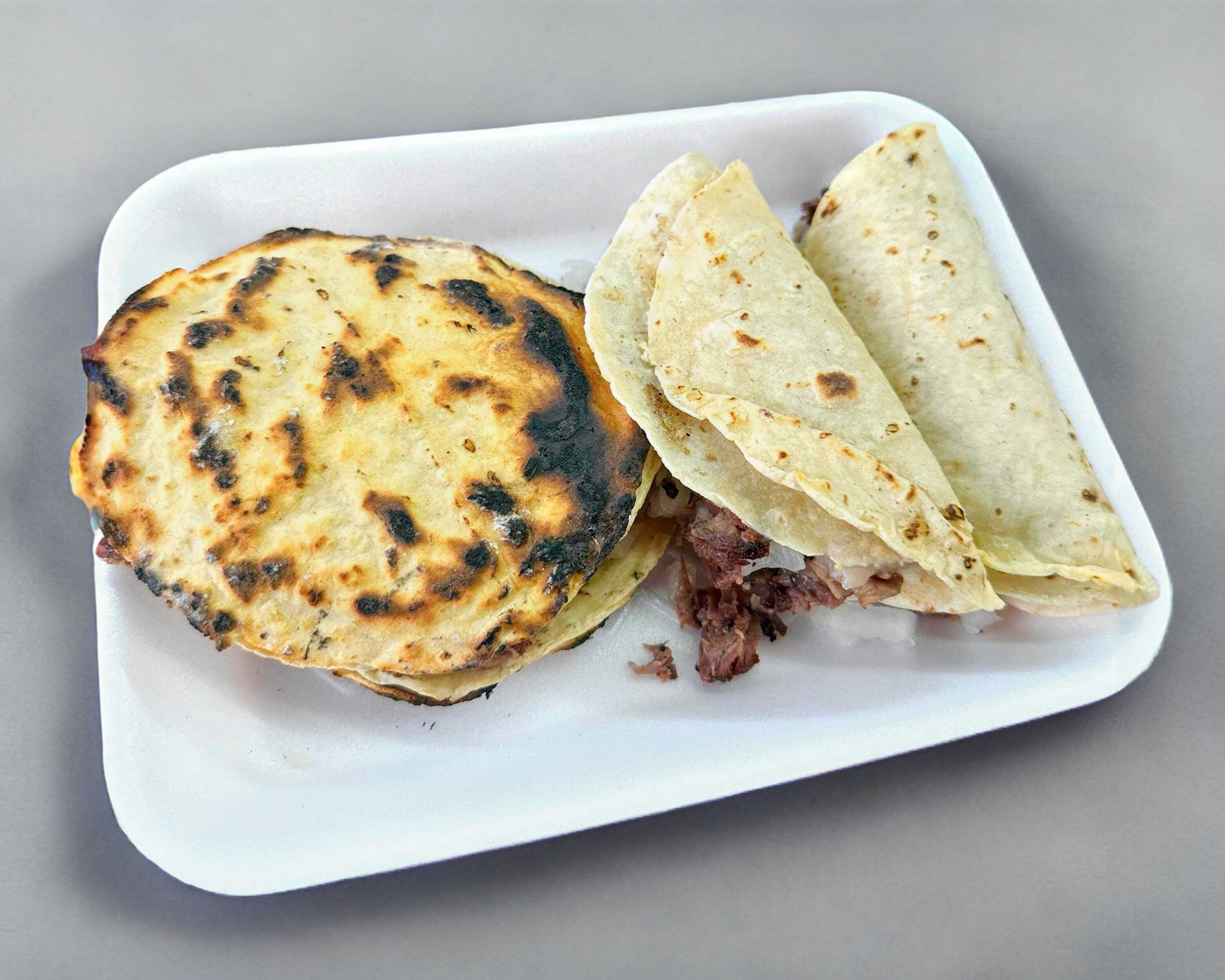 Quesadilla de Carne Asada + Dos Tacos de Carne Asada + Jamaica 1/2 litro.