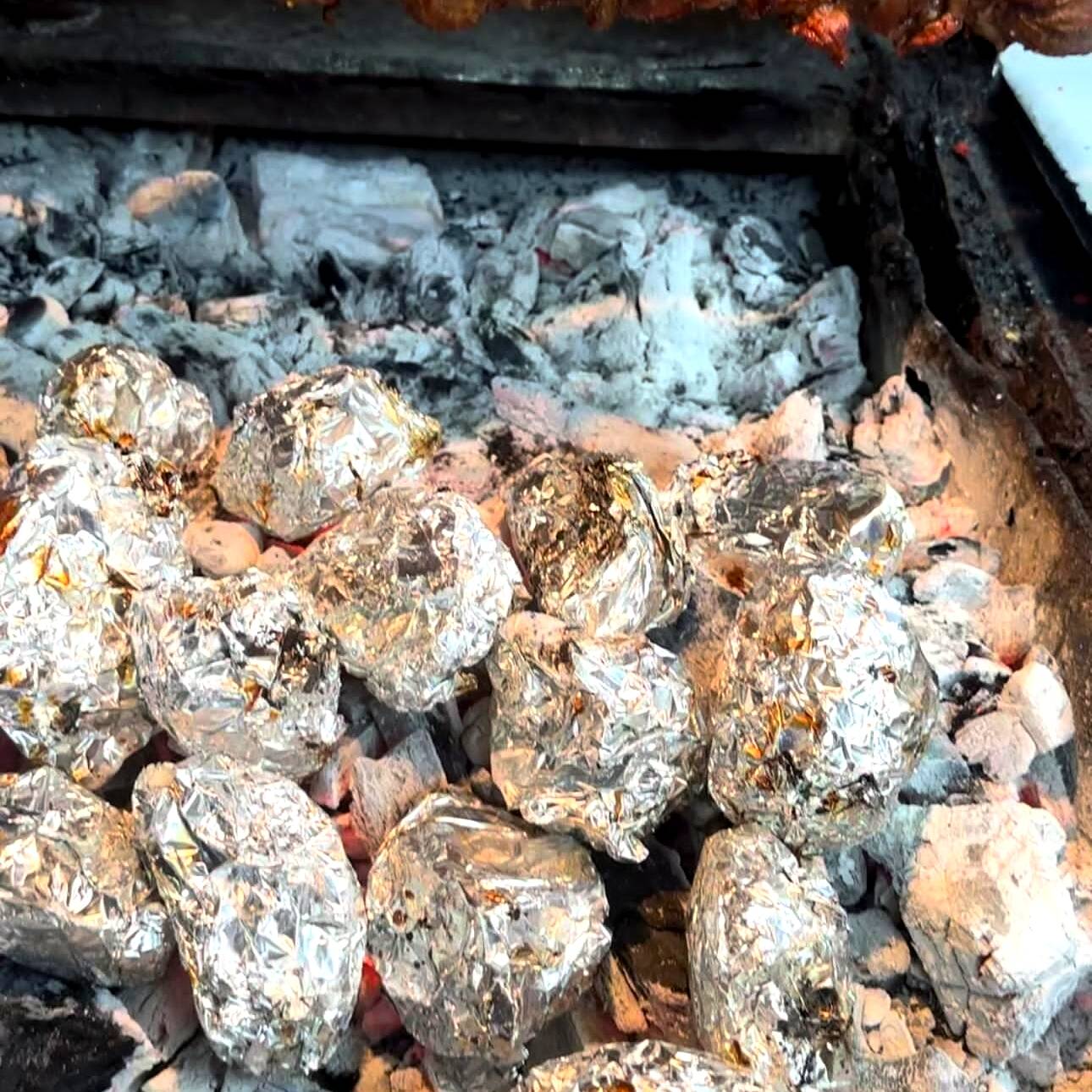 Cebolla empapelada en aluminio asada a las brasas, porción personal