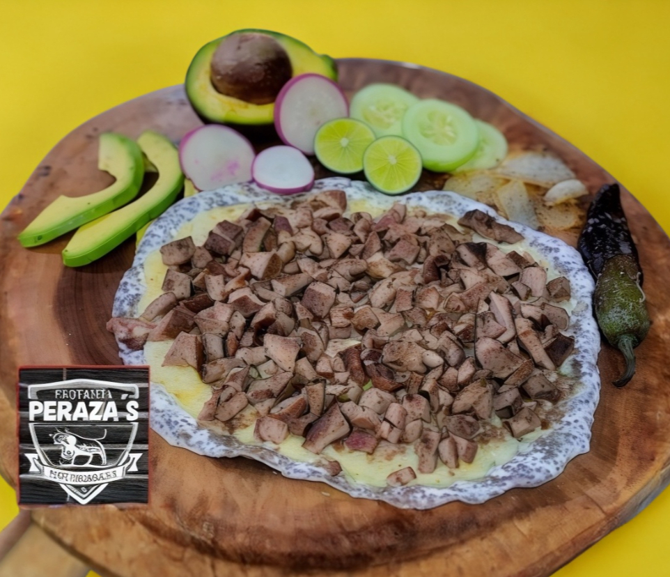 Gordita de maíz con queso y tripa