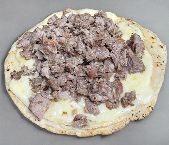 1 Gordita de maíz con asientos, queso derretido, carne asada y tripa. (Porción personal)
