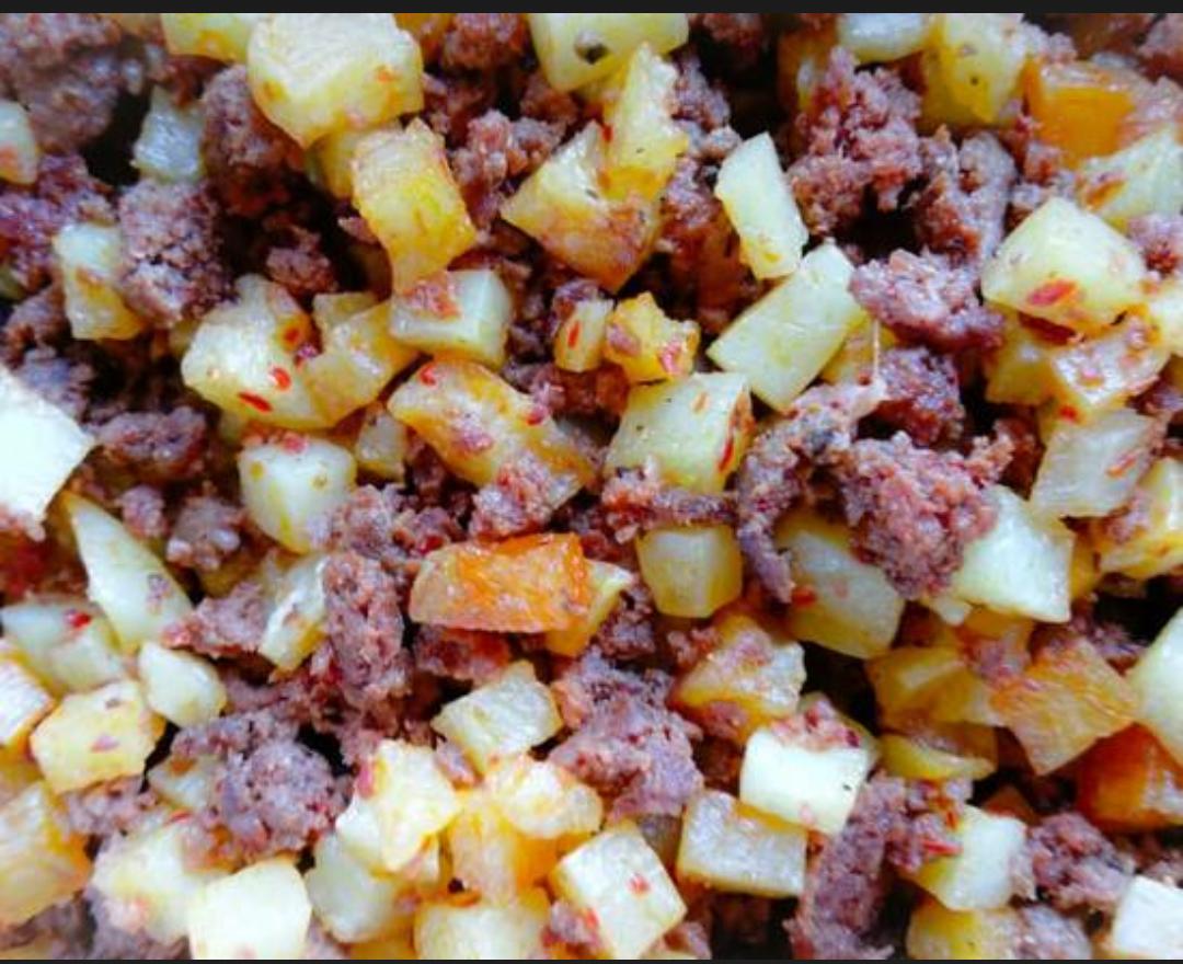 Tortilla de maíz hecha a mano con Machaca Guisada a la Mexicana