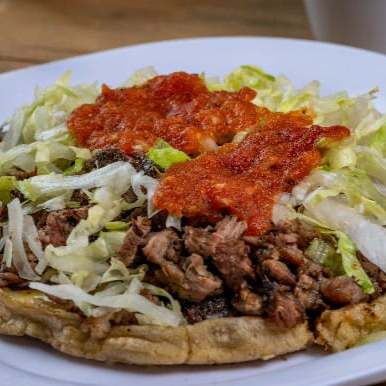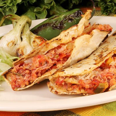 INCLUYE 7 TORTILLAS RECIEN HECHAS 2 TORTILLAS DORADAS ALAS BRASAS,FRIJOLES DE LA OLLA ,GUACAMOLE SALSA Y VERDURAS
