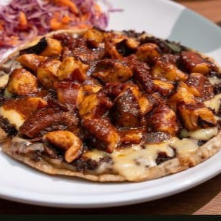 TORTILLAS GRANDES JUMBO SEMIDORADAS GRATINADAS CON CARNE ASADA Y CAM RANCHERO ,ACOMPAÑADAS CON GUACAMOLE ,SALSA Y VERDURAS