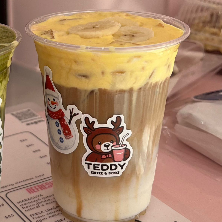 LATTE DE BANANA CON COLD FOAM DE PUDDING DE PLATANO(AGREGA TEDDY BOTE EN EXTRAS)
