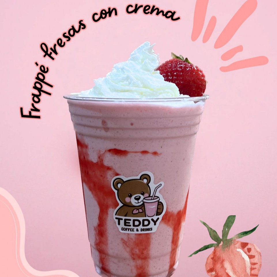 FRAPPE DE FRESAS CON CREMA Y CREMA BATIDA (AGREGA TEDDY BOTE EN EXTRAS)