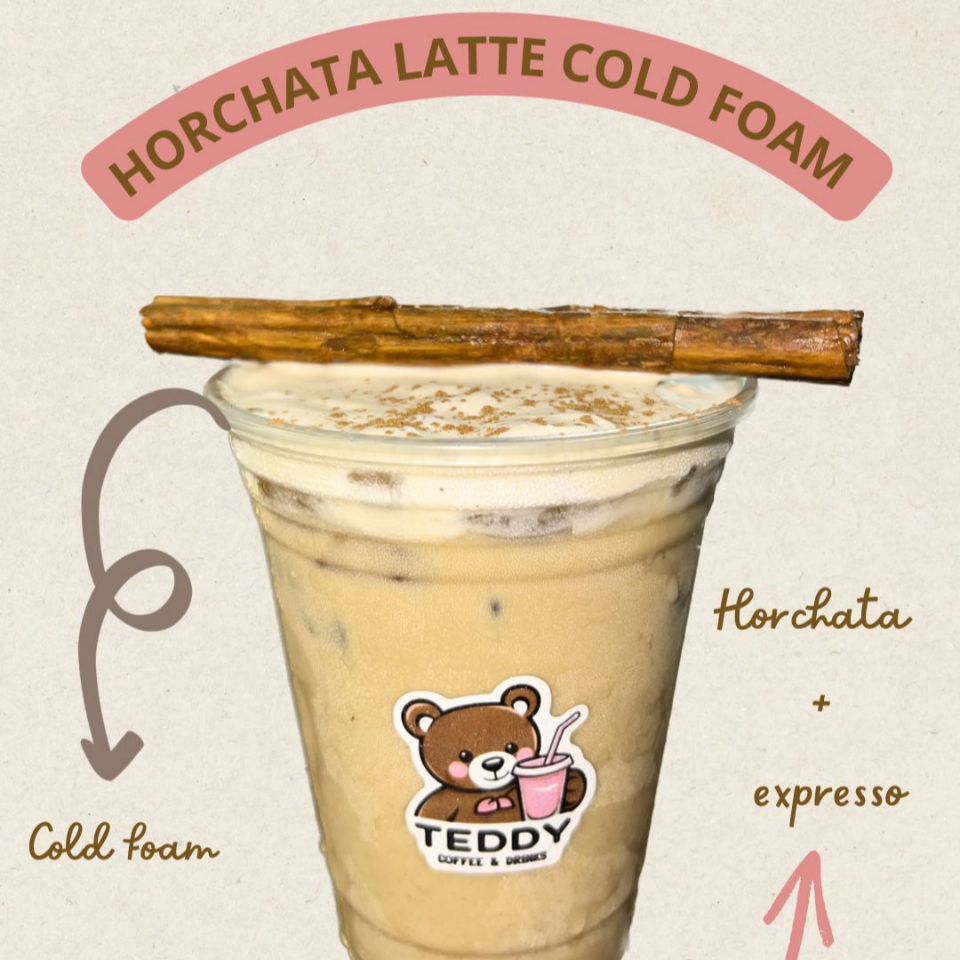 LATTE HORCHATA, ESPRESSO, LECHE DESLACTOSADA Y COLD FOAM (AGREGA TEDDY BOTE EN EXTRAS)