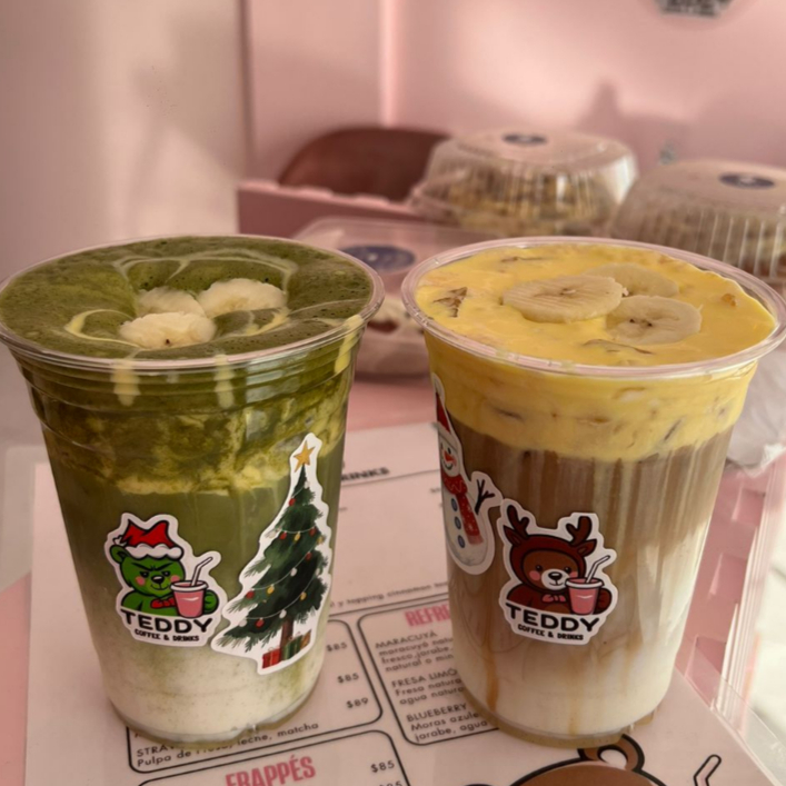 MATCHA ORGANICO ENDULZADO CON TOPPING DE PUDDING DE BANANA(AGREGA TEDDY BOTE EN EXTRAS)