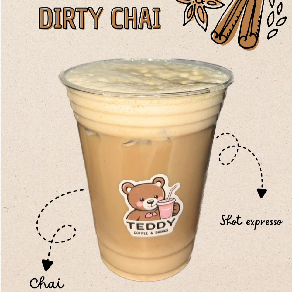 TE CHAI, ESPRESSO CON LECHE DESLACTOSADA (AGREGA TEDDY BOTE EN EXTRAS)