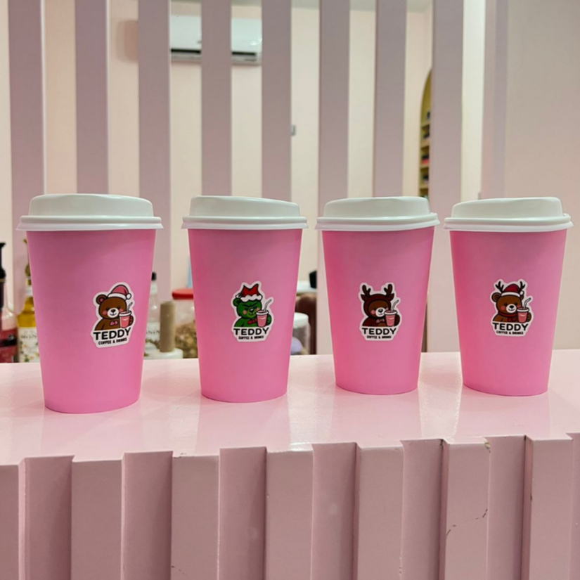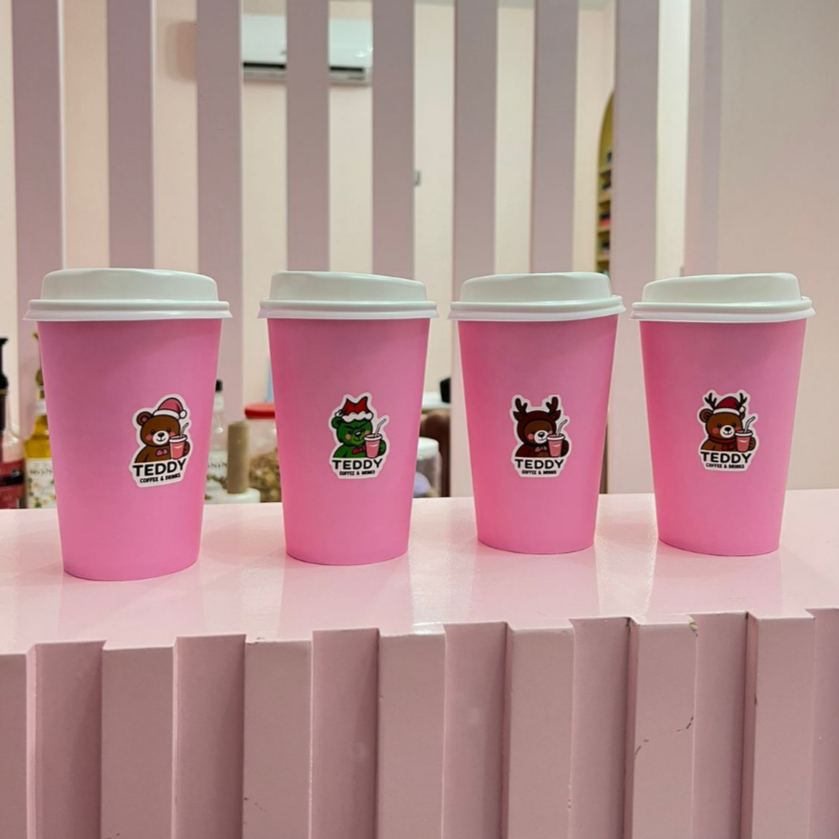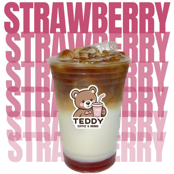 LATTE CON JARABE DE FRESA, ESPRESSO Y LECHE DESLACTOSADA (AGREGA TEDDY BOTE EN EXTRAS)