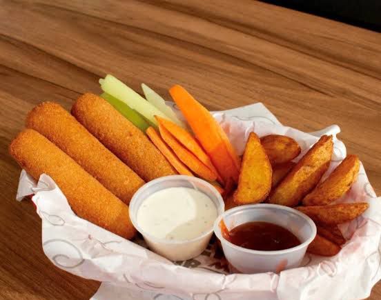 Dedos de queso con papas a elegir, porción personal.