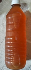 Jugo de limon, sal, fresca, gomias con escarcha de pulpa de mango chamoy y tajin, y tarugo.