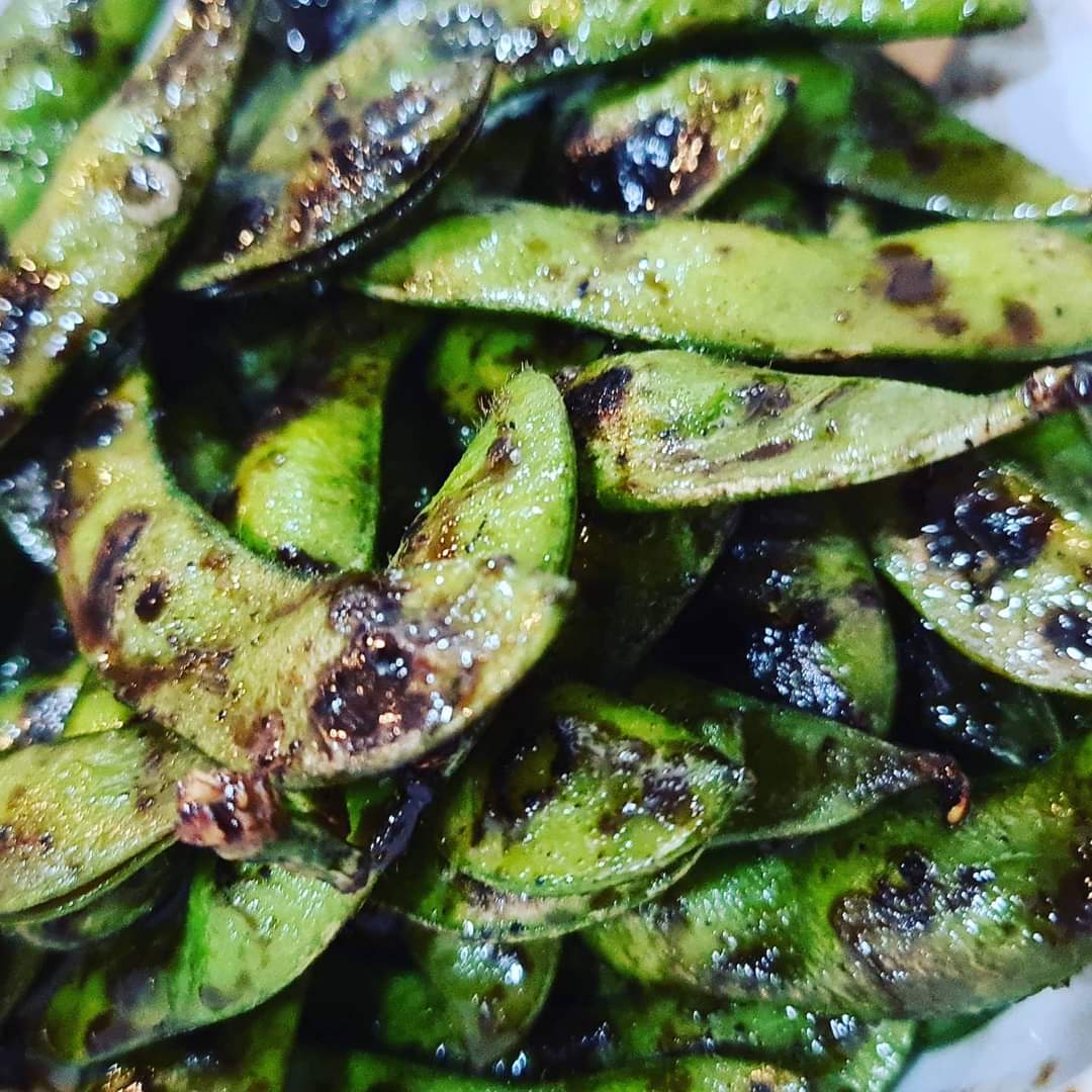 Deliciosas vainas de soja, salteadas al momento, un clásico de sabor.