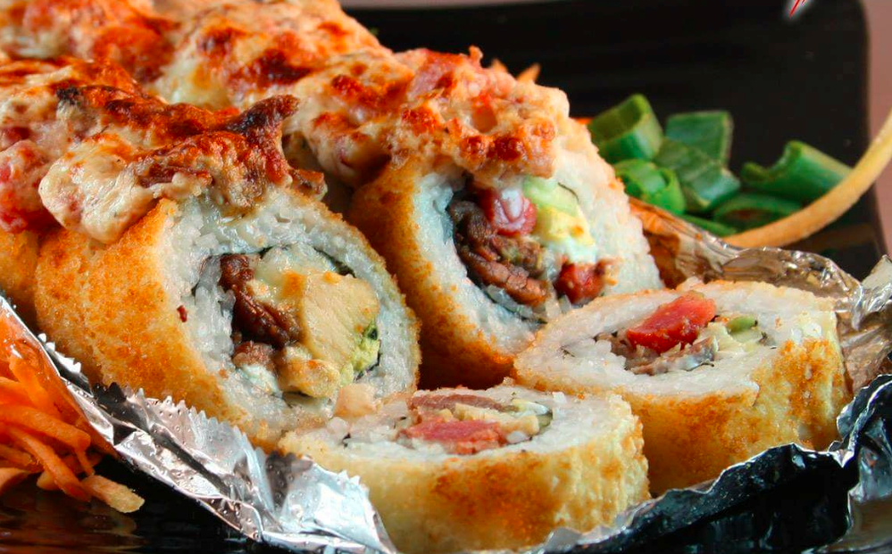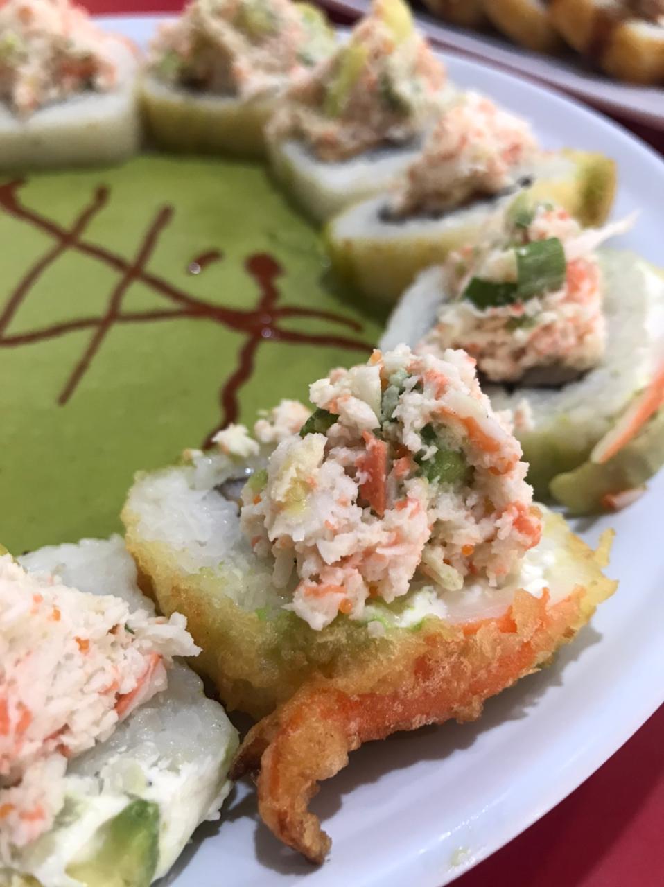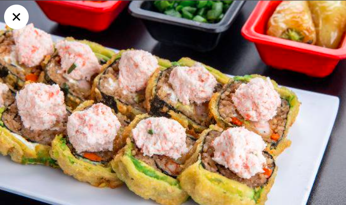 Tampico, kanikama, queso Philadelphia, aguacate, pepino, atún, salmón, masago, aderezo chipotle y togarashi. (12 piezas).