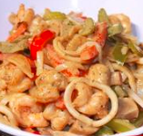 Sopa tailandesa a base de mariscos y noodles, con un toque picante.