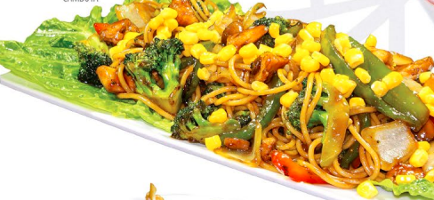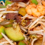Fideo, vegetales y camarones, con esencia thai.
