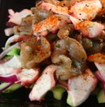 Ensalada tradicional japonesa, a base de pepino, camarón, kanikama, salmón, pulpo, furikake y aguacate, acompañada de una deliciosa vinagreta oriental.