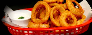 Aros de cebolla. Acompañados de un aderezo.