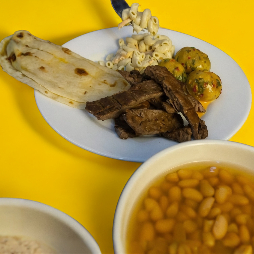 Incluye 1/2 L de frijoles, tortillas de maíz, salsa, chile y cebolla asada, acompañado de un refresco de 2 L y 1/4 de guacamole.