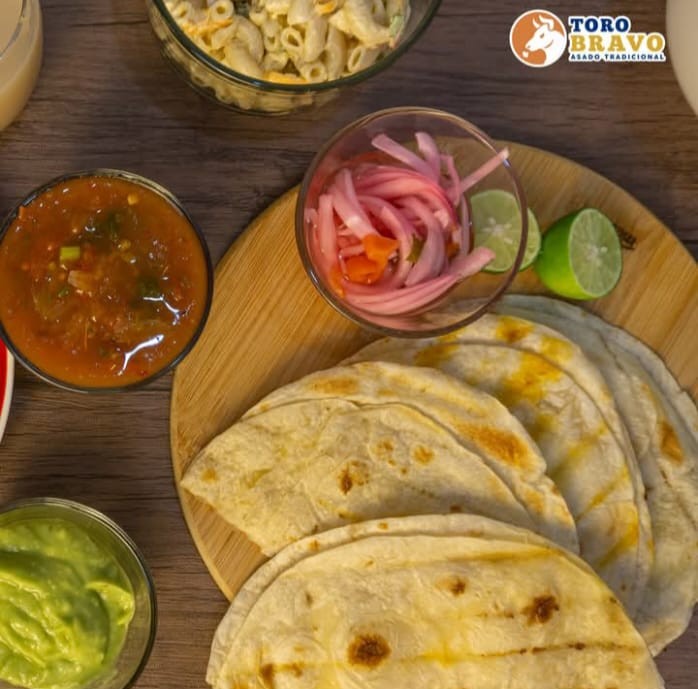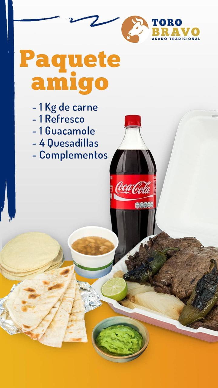 Incluye salsa, lechuga, tortillas y papas sazonadas, refresco de 2 L, 1 sopa fría de 1/2 L.