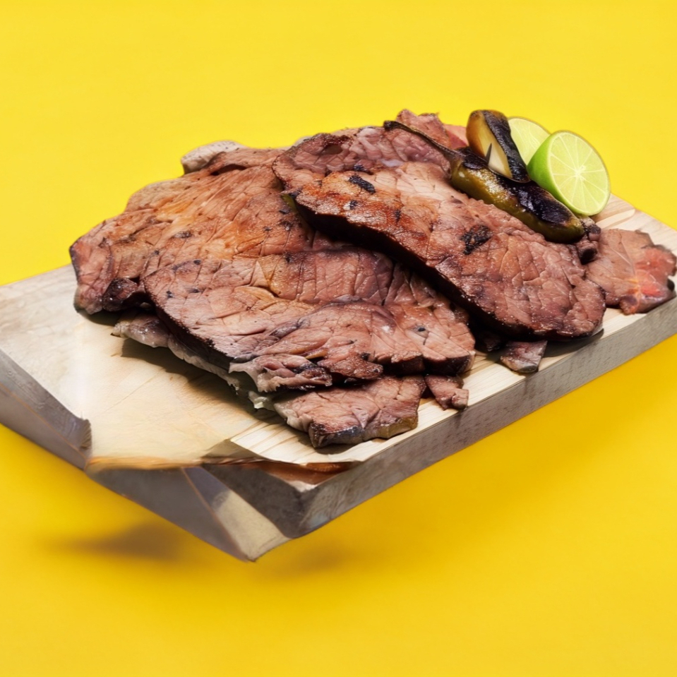 Carne sirloin asada al carbón incluye, frijol, tortillas, salsa, chile asado y cebolla asada ideal para 4 personas.