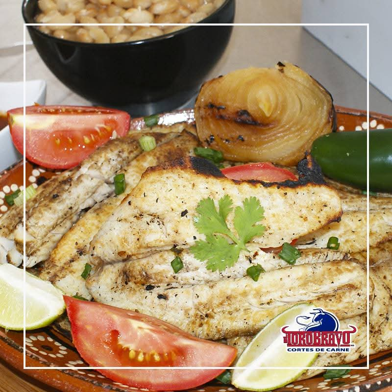 1 KG DE FILETE DE PESCADO ASADO CON FRIJOL TORTILLAS SALSA CHILES Y CEBOLLAS ASADAS