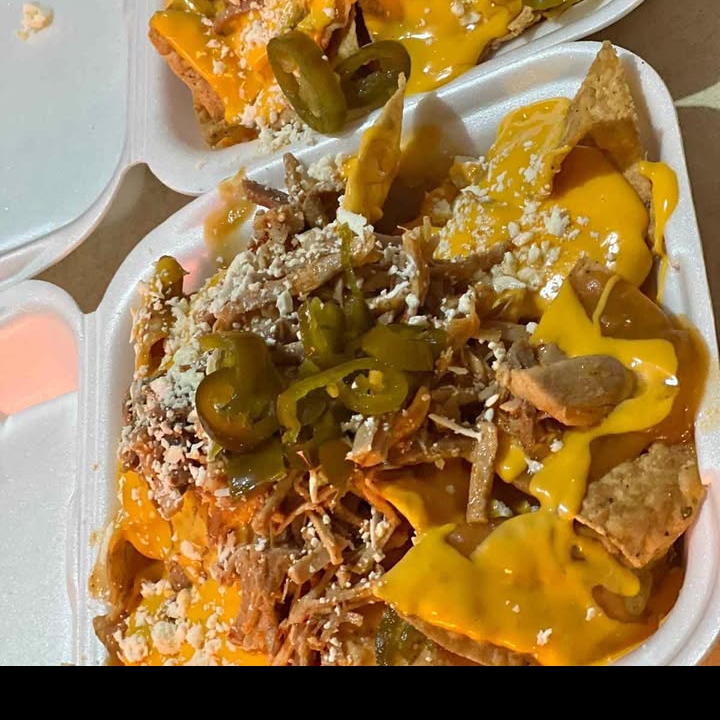 Totopos frijoles puercos queso amarillo cochinita y queso cotija y chile