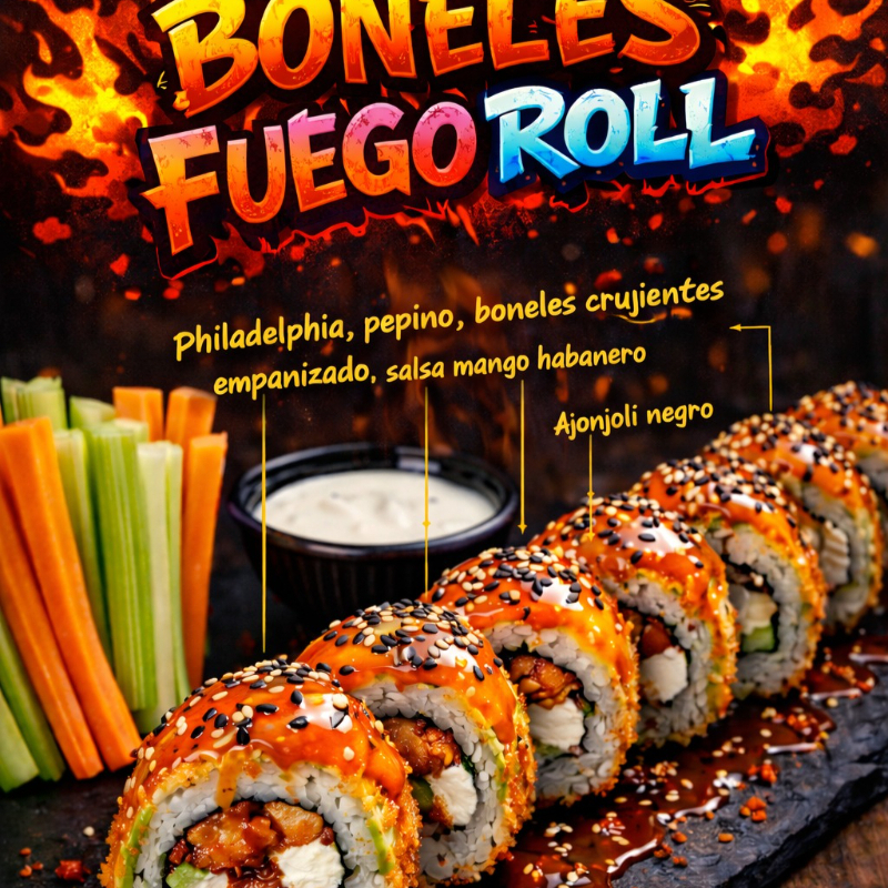 Philadelphia, Pepino, Boneless crujientes, Bañados en Salsa de Mango Habanero coronado con ajonjoli negro