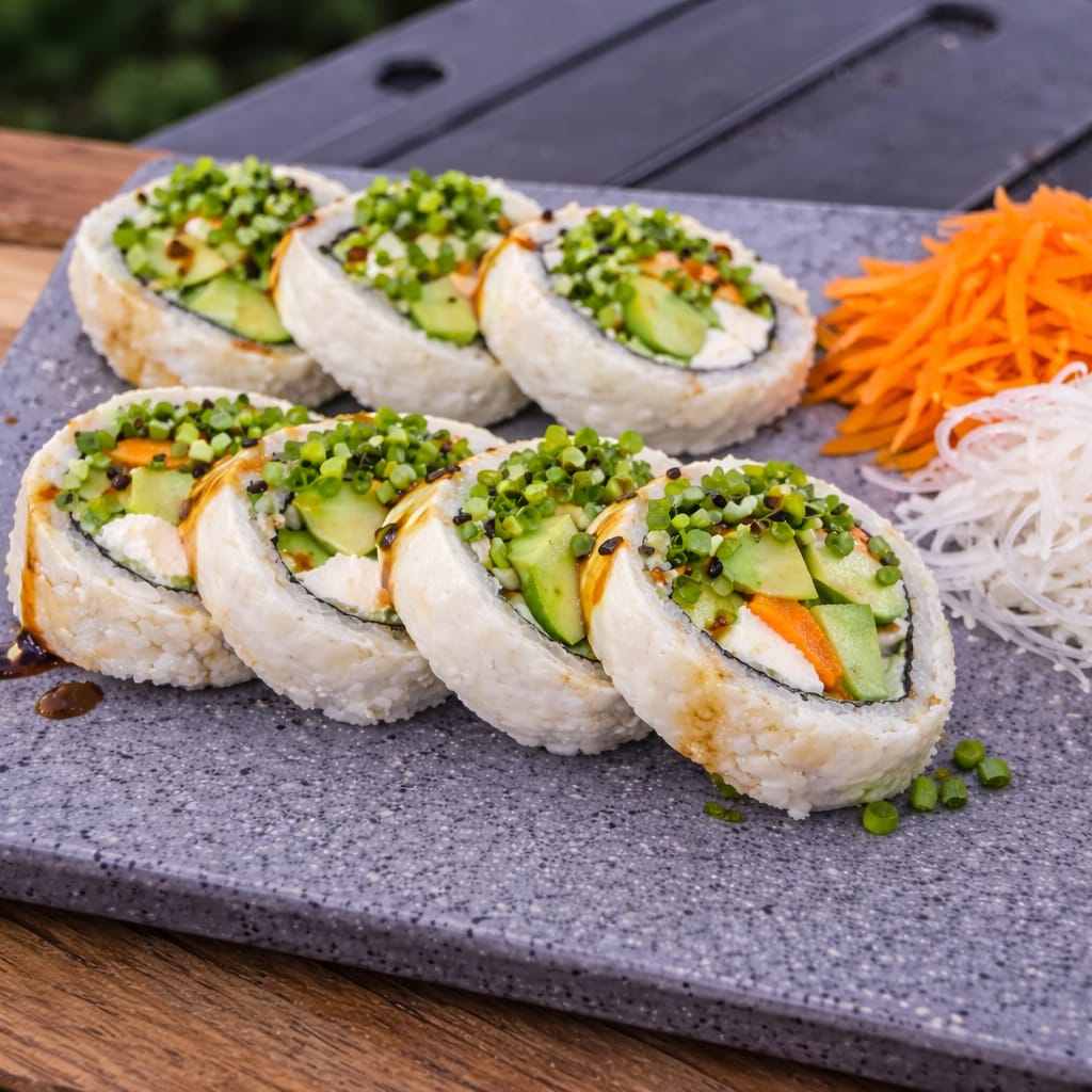 Pepino, Aguacate, Phila, Coronado con Pollo Crujiente y Aderezo de la casa