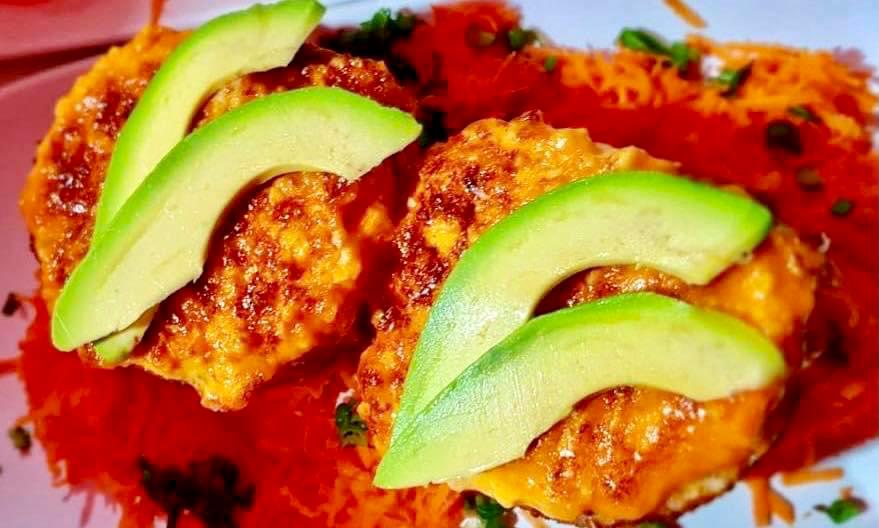 Relleno de zanahoria, pepino, aguacate y Philadelphia, cubierto de abocado de aguacate.