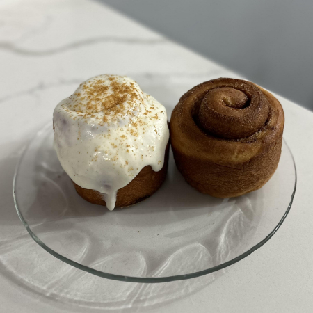 Relleno de canela, mascabado y glaseado de queso