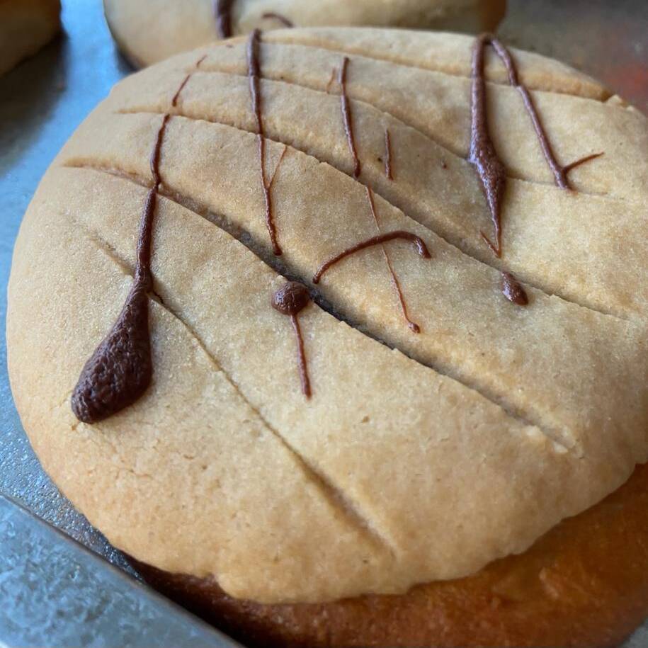Tradicional concha esponjosa con cobertura sabor mazapán