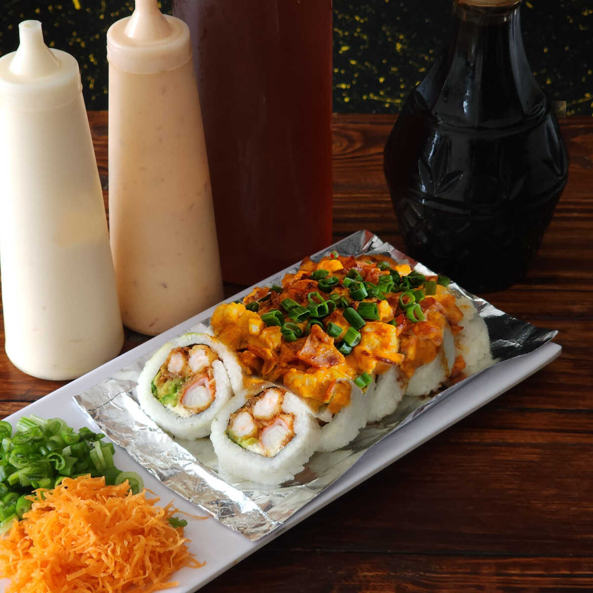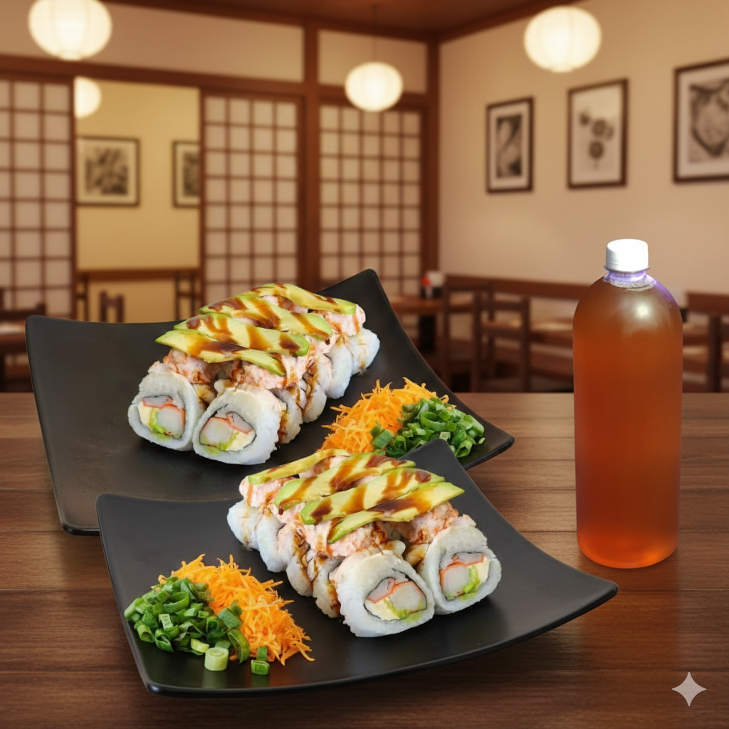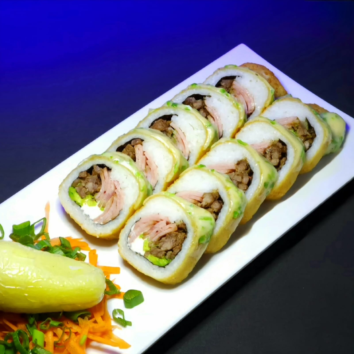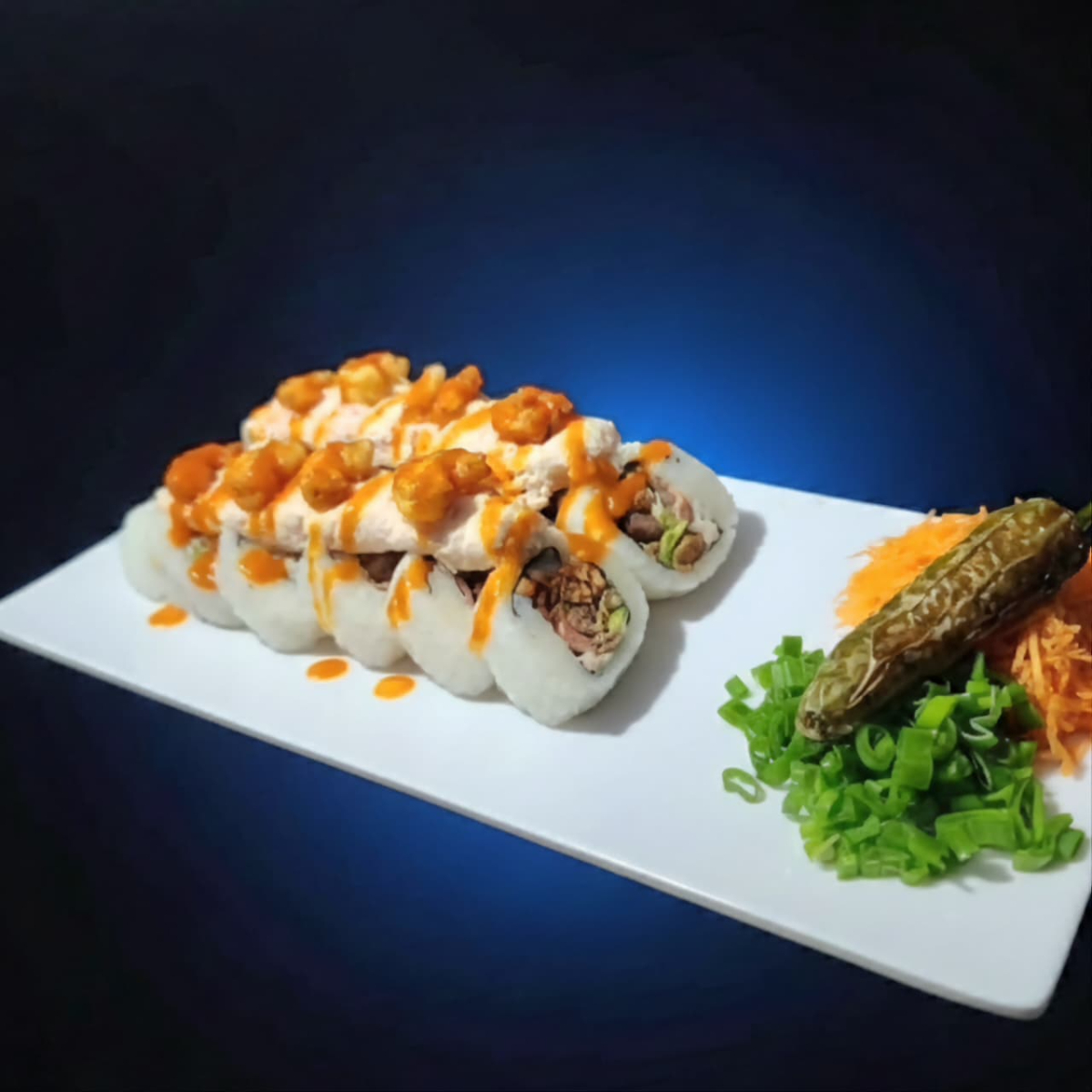 PD: philadelphia, aguacate, res PF; tampico, camarón frito con salsa Sriacha.