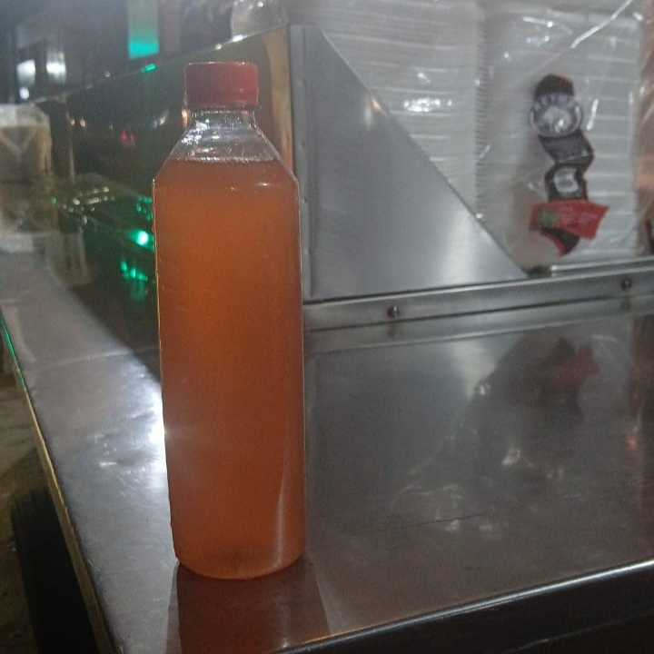 Clasica hamburguesa de carne de res acompañada con papas y aros de cebolla.