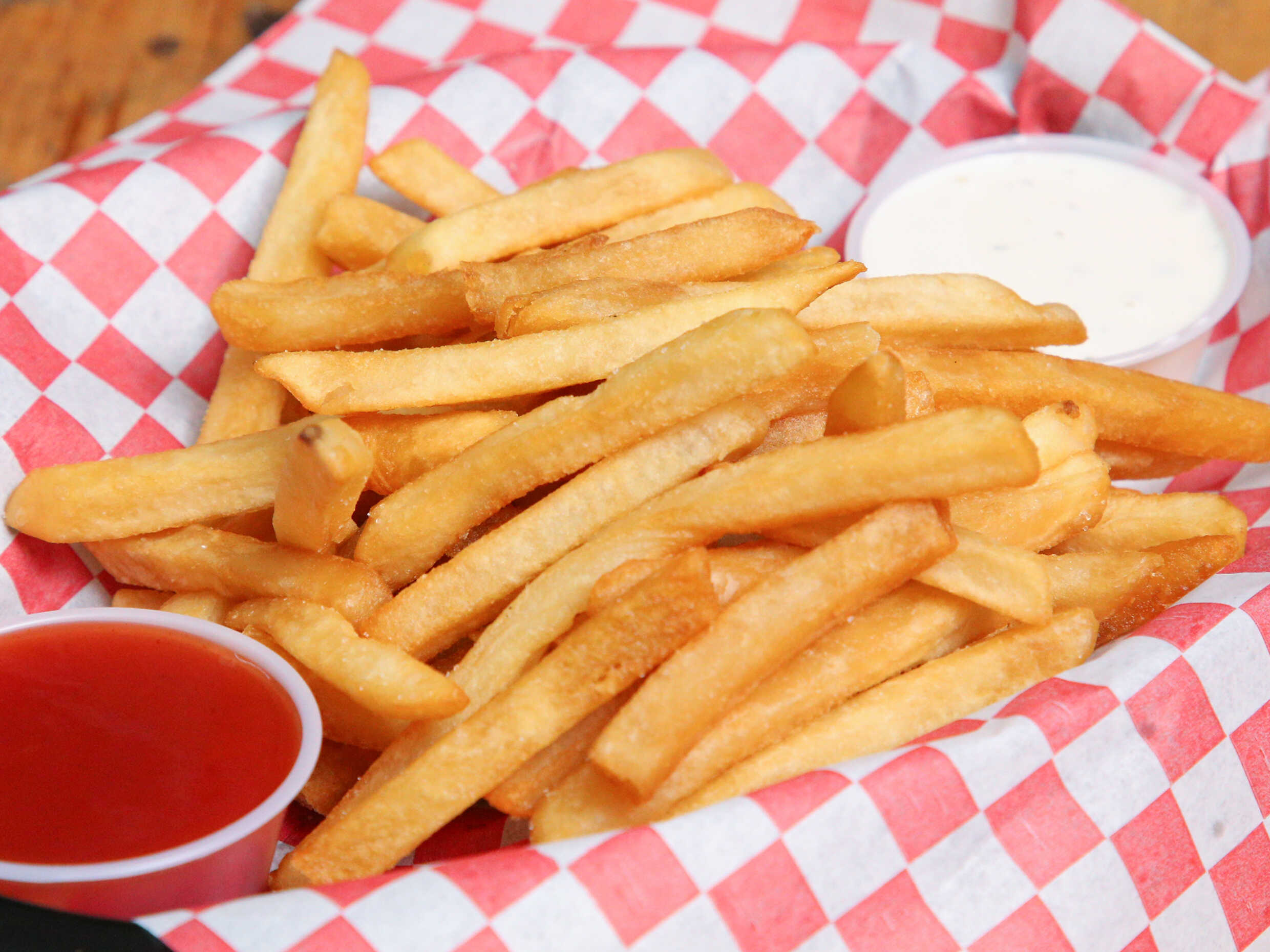 Deliciosas papas a la francesa acompañado de salsa catsup.