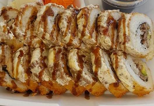 Por dentro philadlephia, aguacate, cangrejo, por fuera tampico especial,camaron a la roka, siracha, aderezo roka y salsa de anguila.