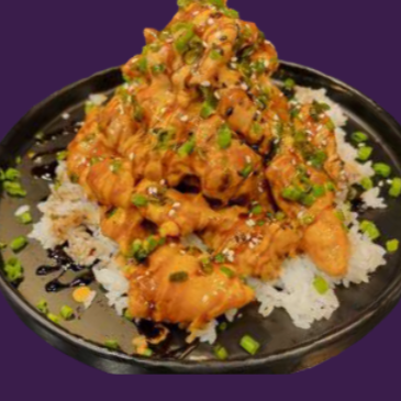 Arroz frito con pollo y cebolla crunchy, tampico, philadelphia, cebollín y bañado en salsa de anguila.