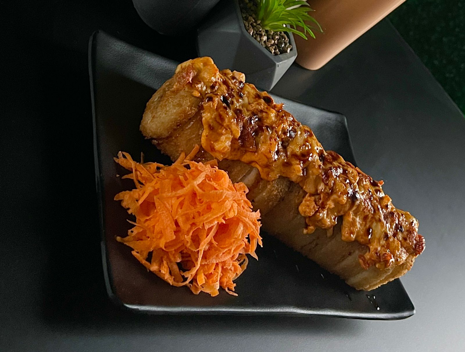 GRATINADO DE LA CASA CON TAMPICO, ENVUELTO EN TORTILLA DE HARINA. (3 PZAS)