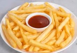 ORDEN DE BONELESS (200 grs), ACOMPAÑADO DE PAPAS A LA FRANCESA, TIRAS DE PEPINO Y ZANAHORIA, CON ADEREZO RANCH AL CENTRO.