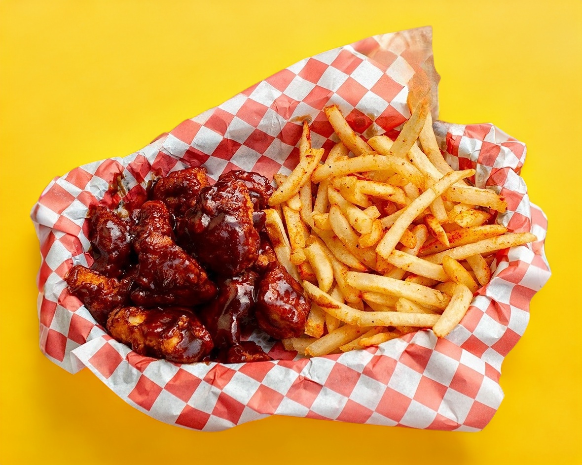 Deliciosos trozos de pollo, salsa a elegir: BBQ o Búfalo, acompañados de zanahoria y apio, o papas a la francesa con aderezo.