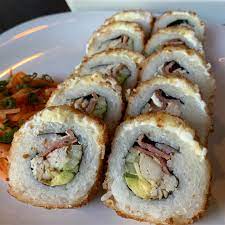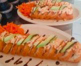 Philadelphia, alga, aguacate, res, pollo y tocino por dentro philadelphia y Chihuahua por fuera.
