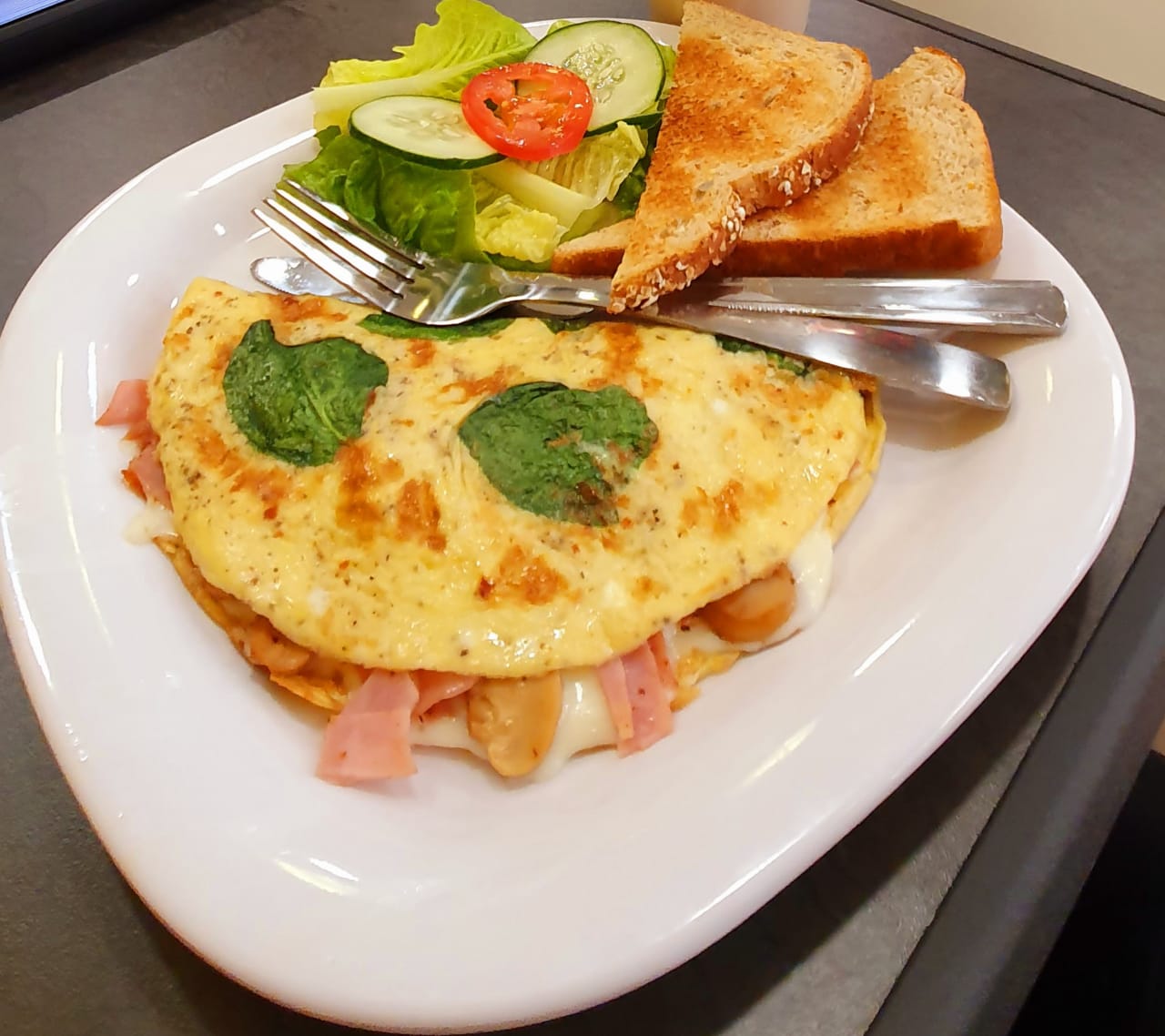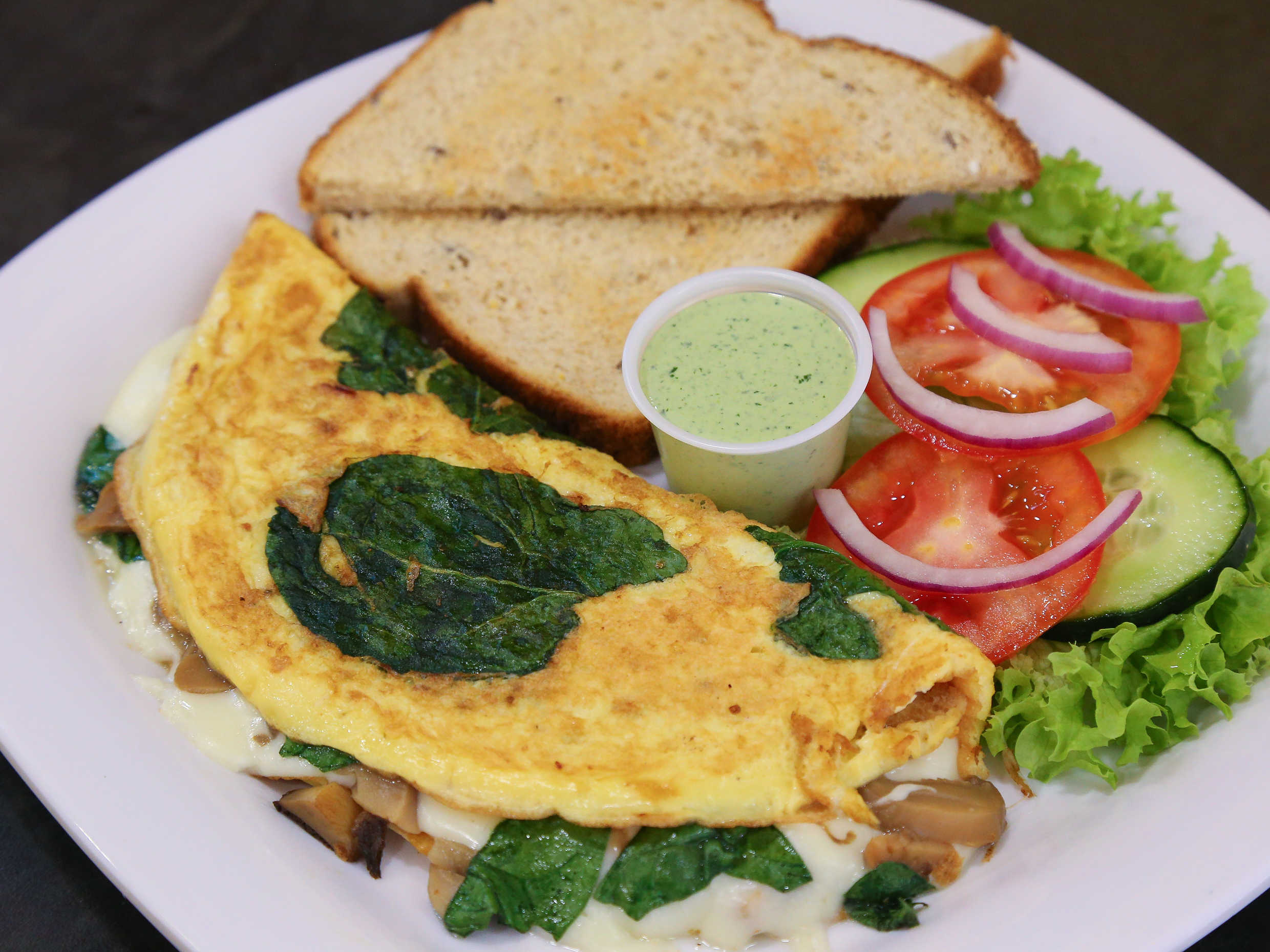 Espinaca, champiñones, mozzarella (verdura y 1 rebanada de pan).