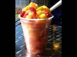 Manzana roja y verde, melón chino, papaya, plátano, fresa, con crema dulce (Granola, coco rayado, pasas, nuez).