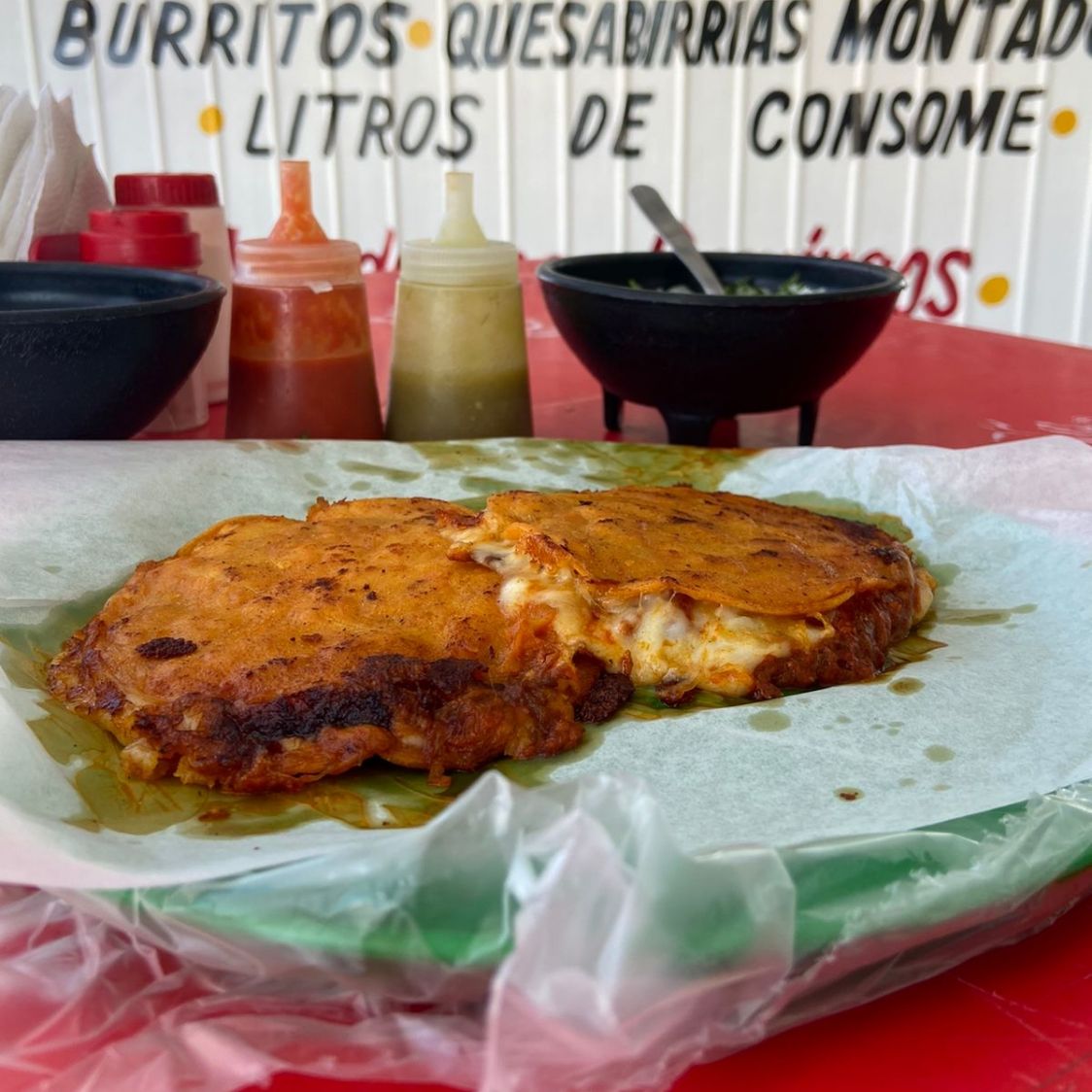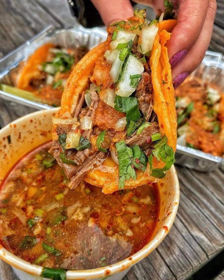 Preparado con barbacoa y birria.