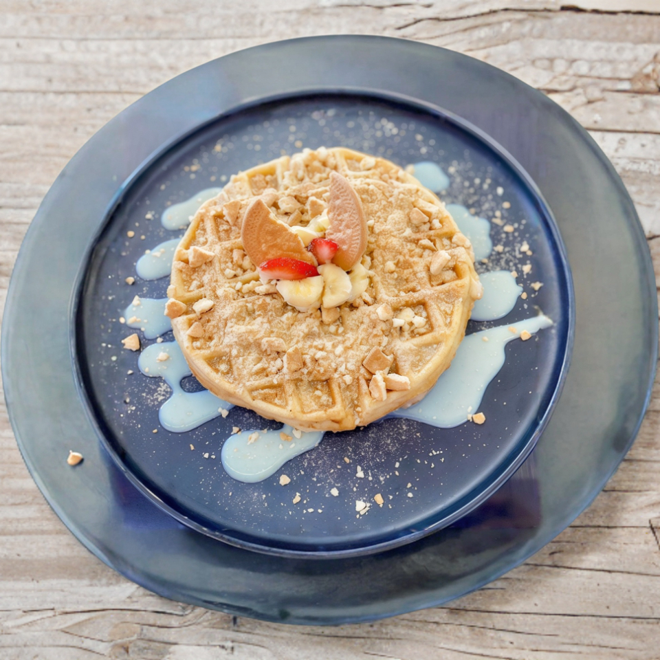 WAFFLE, CREMA DE CACAHUATE, NUTELLA Y MAZAPAN