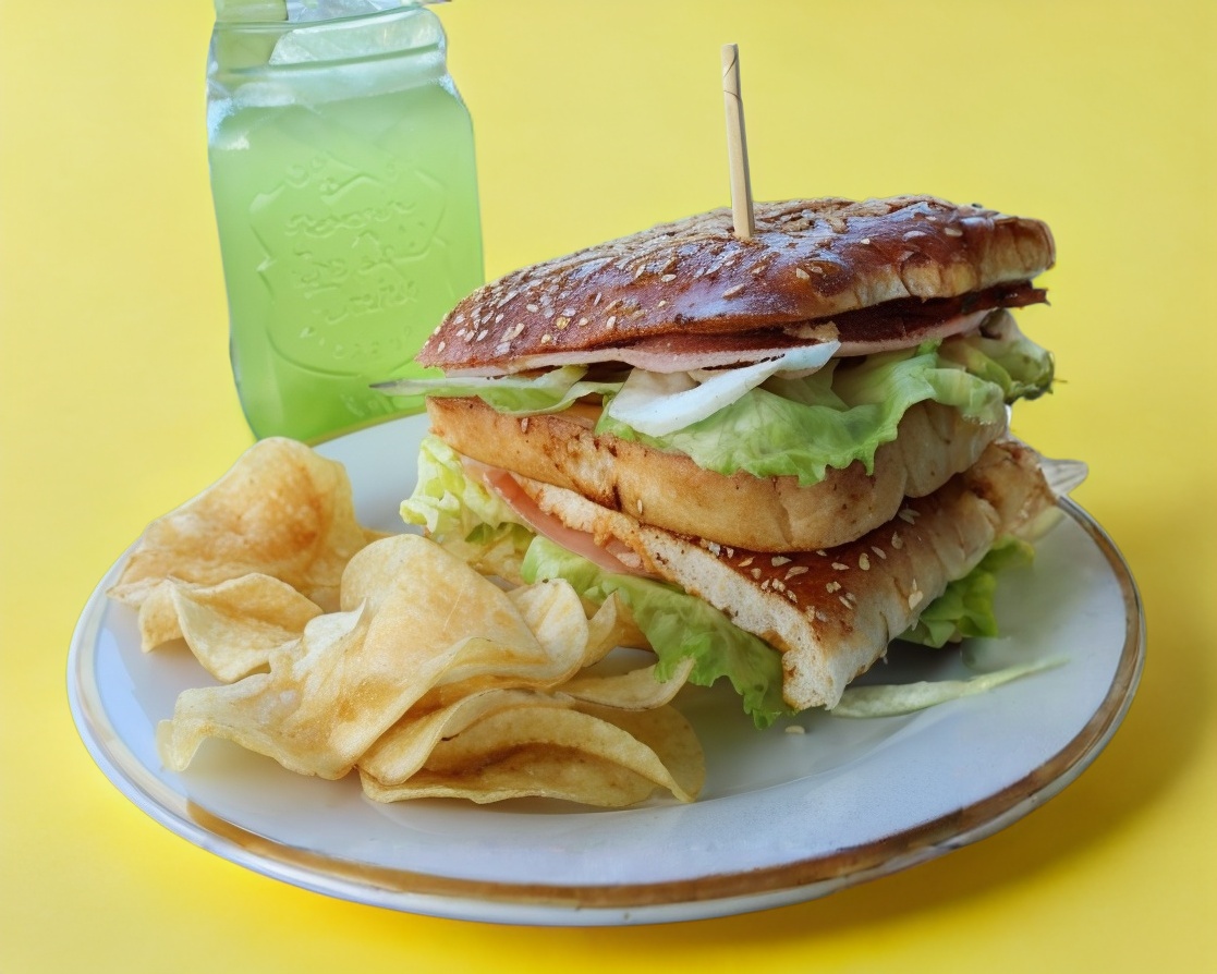 Sandwich de jamón de pavo, queso, mayonesa, lechuga y aguacate.