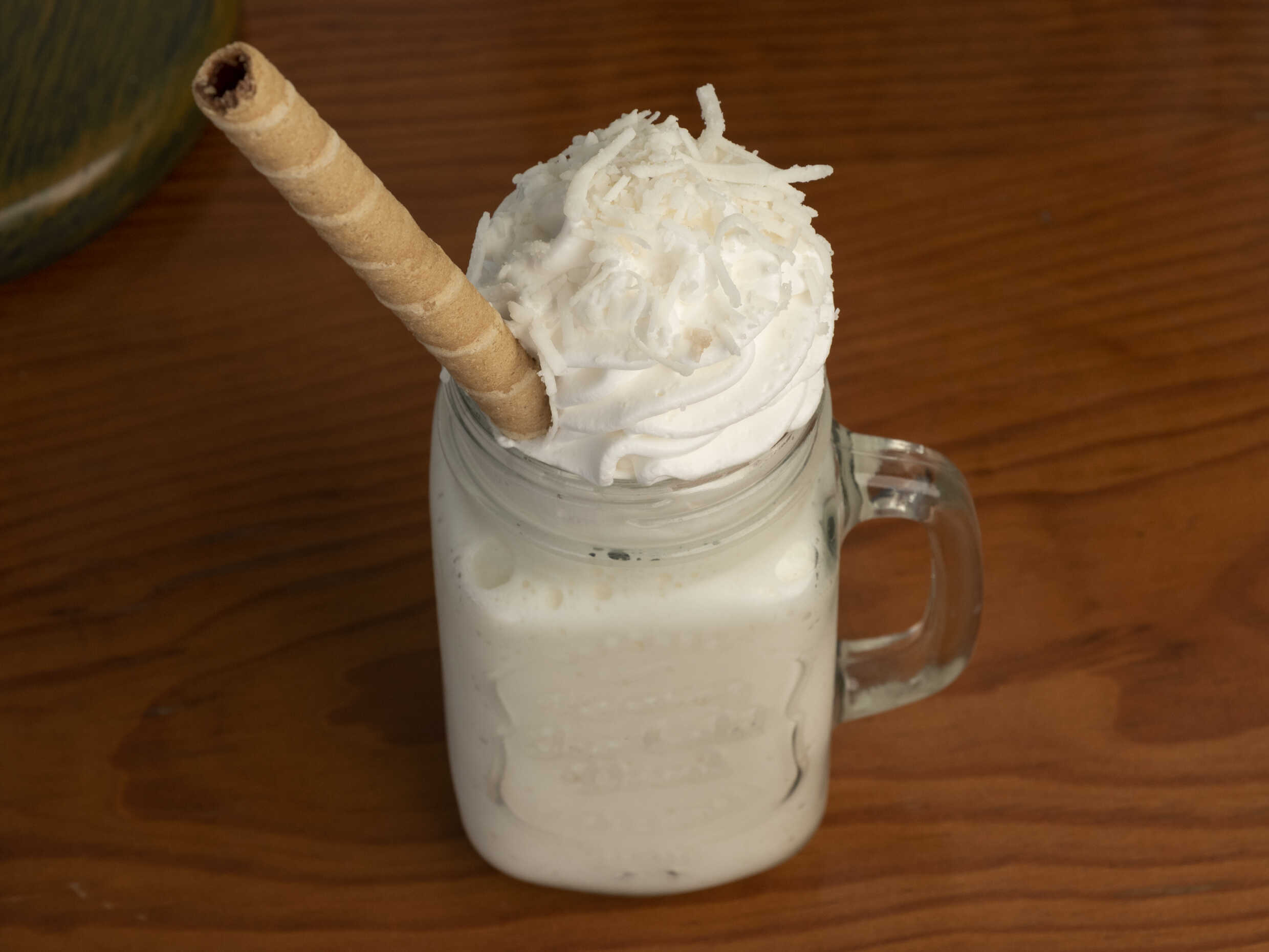 Hielo frappeado con leche lala entera, con saborizante de coco. 16 oz.