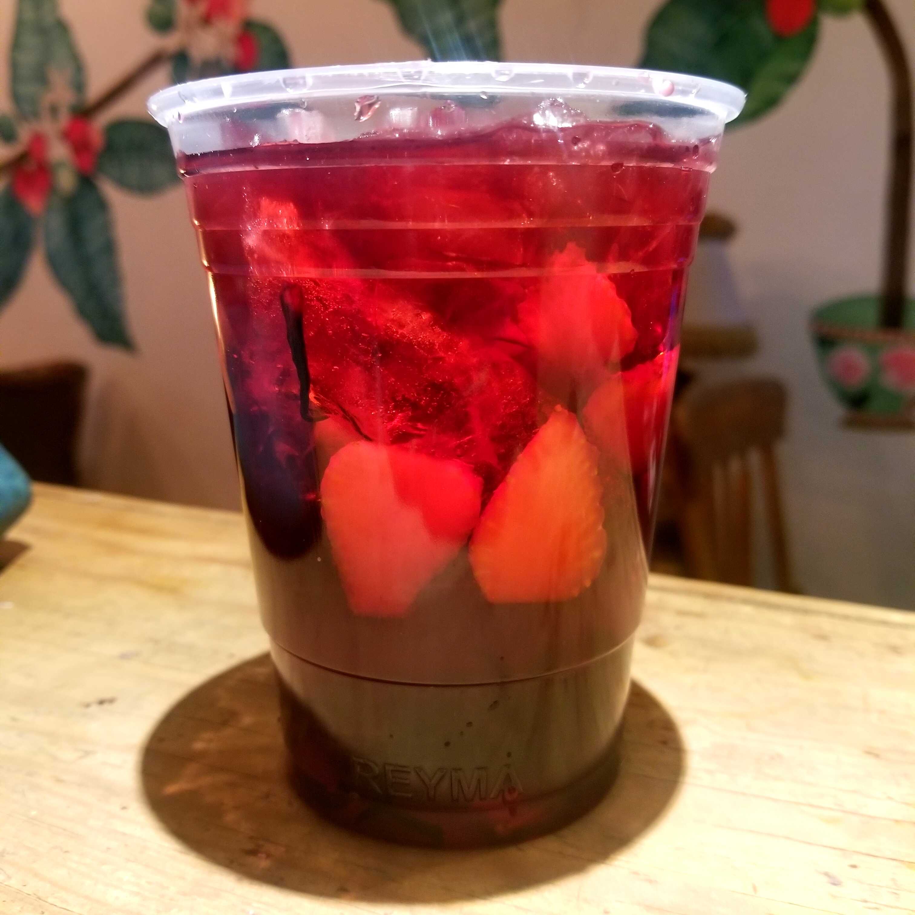 Hielo frappeado, leche entera lala y cerezas. 16 oz.
