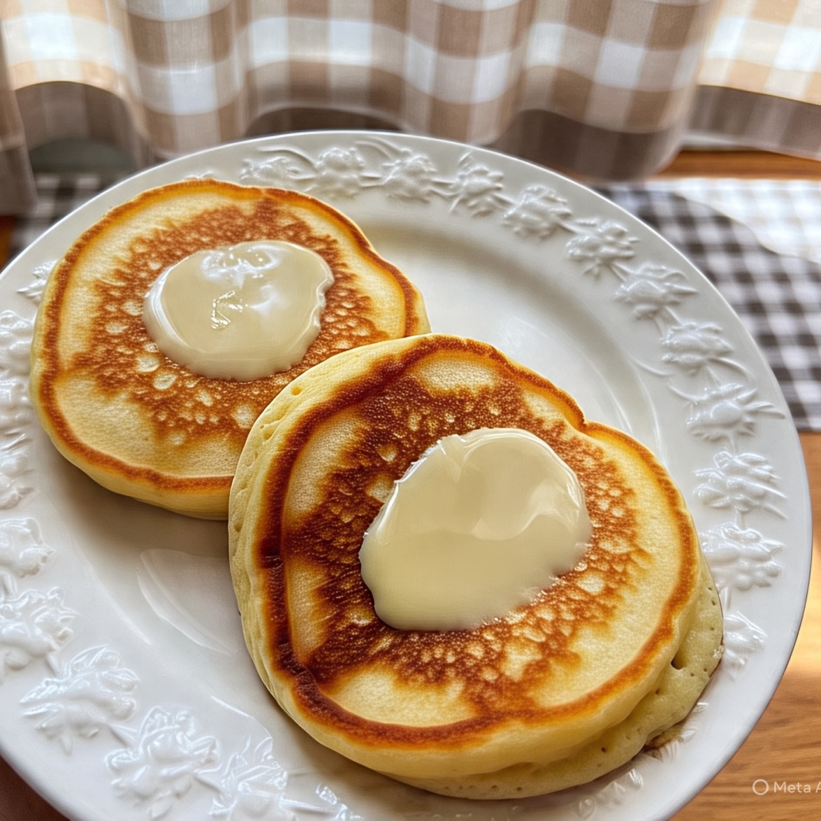 3 piezas de hotcakes con plátano, miel y crema batida.