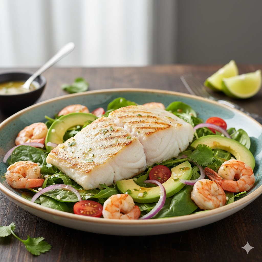 Ensalad Filet Pescado Plancha c/camaron (Grande)..